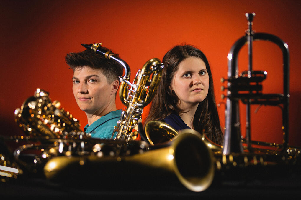 Kate Campbell Strauss is a saxophonist, composer/arranger, and activist with musical roots in New England and New Orleans. Kate plays saxophone in a wide array of contexts, from parades and backyards to concert halls and festivals. As an arranger, Kate has had new works commissioned by Cleo Parker Robinson Dance and the New Orleans Jazz Orchestra – pieces that have featured voices such as Cyrille Aimée, Renee Neufville, John Boutté, and Irma Thomas. Kate’s production work has most recently been featured at the New Orleans Jazz Museum and on Anna Laura Quinn’s 2022 album, Open the Door. Kate is a 2024 alum of OneBeat, a global music exchange program run by the U.S. Department of State and Found Sound Nation. Kate’s creative life is grounded in the power of music to build community, and Kate's collaborations promote empathy and inclusivity. Kate studied music formally at Pomona College and the University of New Orleans, and informally with numerous mentors. Kate currently serves as the Director of Jazz Ensembles at Bowdoin College.Emily Mikesell is a Los Angeles based trumpeter and composer and is an Adams artist. Raised in a musical family in Orlando, Florida, she started playing the trumpet at the age of 11, and went on to study Jazz at Florida State University (BA) and the University of New Orleans (MA). After college, Emily moved to New Orleans and played professionally all over the city and abroad for 8 years. While in New Orleans she played regularly with the New Orleans Jazz Orchestra and Trumpet Mafia as well as many other bands. She recently played at Bonnaroo with Neal Francis and has played with the Dee Dee Bridgewater Big Band at the Kennedy Center and the Detroit Jazz Festival, as well as Lonnie Holley at the Musicbox Village in New Orleans.